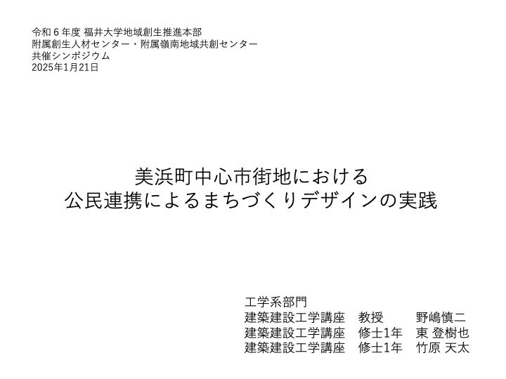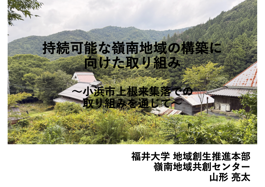 令和7年1月21日(火)に開催された、令和6年度創生人材センター・嶺南地域共創センター共催シンポジウムで発表した取組内容です。